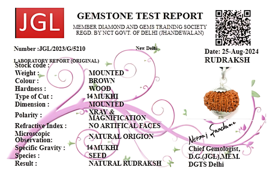The 14 Mukhi Rudraksha Pendant is a sacred and powerful talisman, revered as the symbol of Lord Hanuman and blessed with the energy of Lord Shiva. Known as the Deva Mani, this pendant activates the third eye chakra, enhancing intuition, awareness, and protection. It empowers the wearer with courage, confidence, and clarity in decision-making. Ideal for those in leadership roles, it shields against negativity and fosters spiritual growth. Handcrafted with an authentic 14 Mukhi Nepali Rudraksha bead and set in a beautiful pendant design, it is perfect for daily wear. Embrace divine strength—wear the 14 Mukhi Rudraksha Pendant with faith.