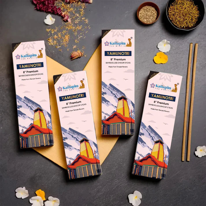 Each of the four unique dhoop batti packs captures the spiritual energy and fragrant aura of one of these revered Himalayan pilgrimage sites. As you light a stick, you are gently transported to the majestic temples and pristine landscapes of Uttarakhand, experiencing the sacredness and calm of these holy destinations.