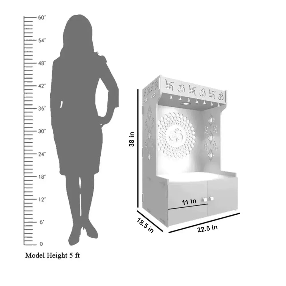 Om Chakra Floor Temple with Spacious Wooden Shelf & Inbuilt Focus Light