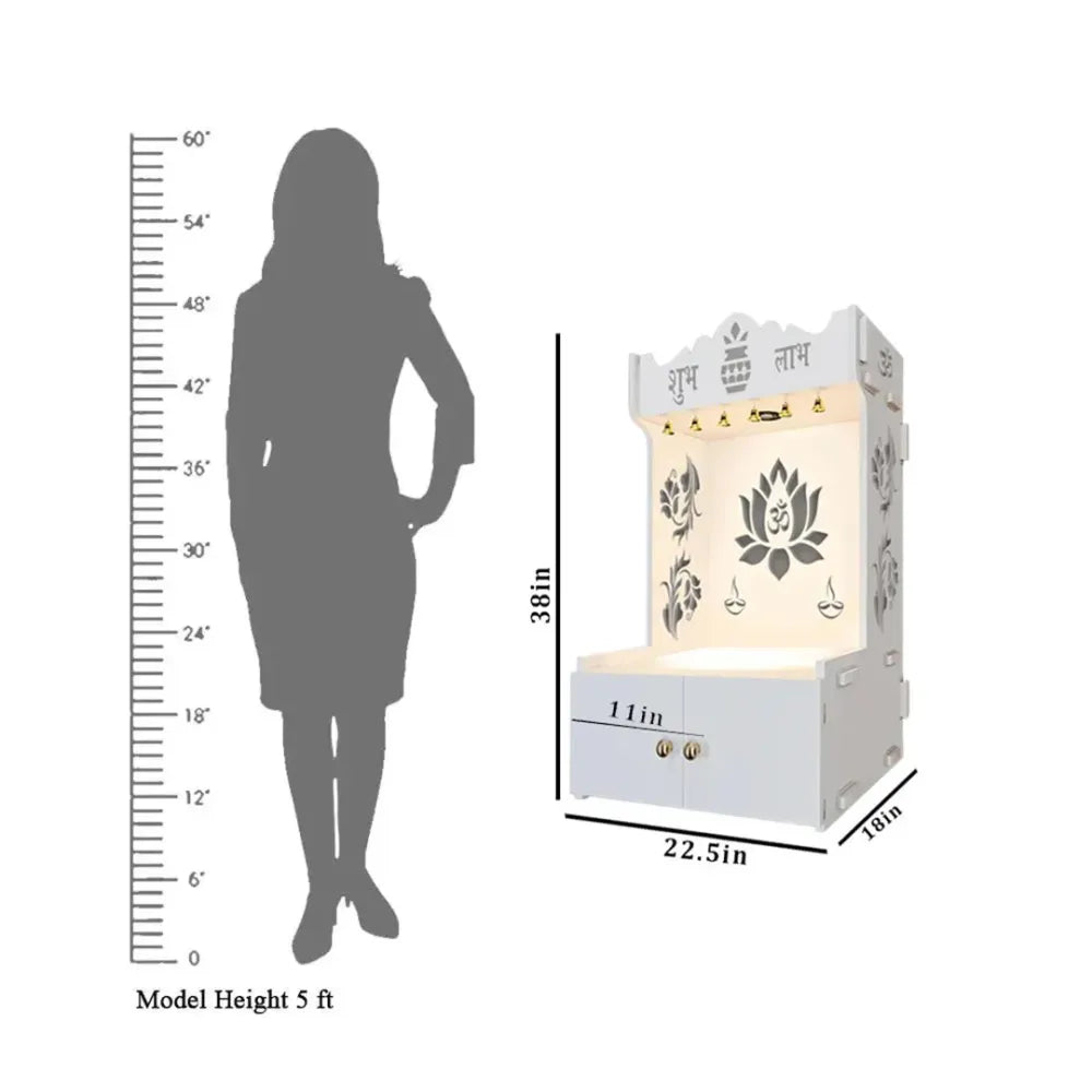 Wooden Floor Temple with Lotus Design & Shelf – White